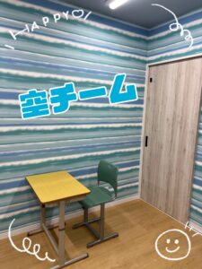 • 空チームのお部屋は、心も晴れやかになるような清々しい**「空色」**。